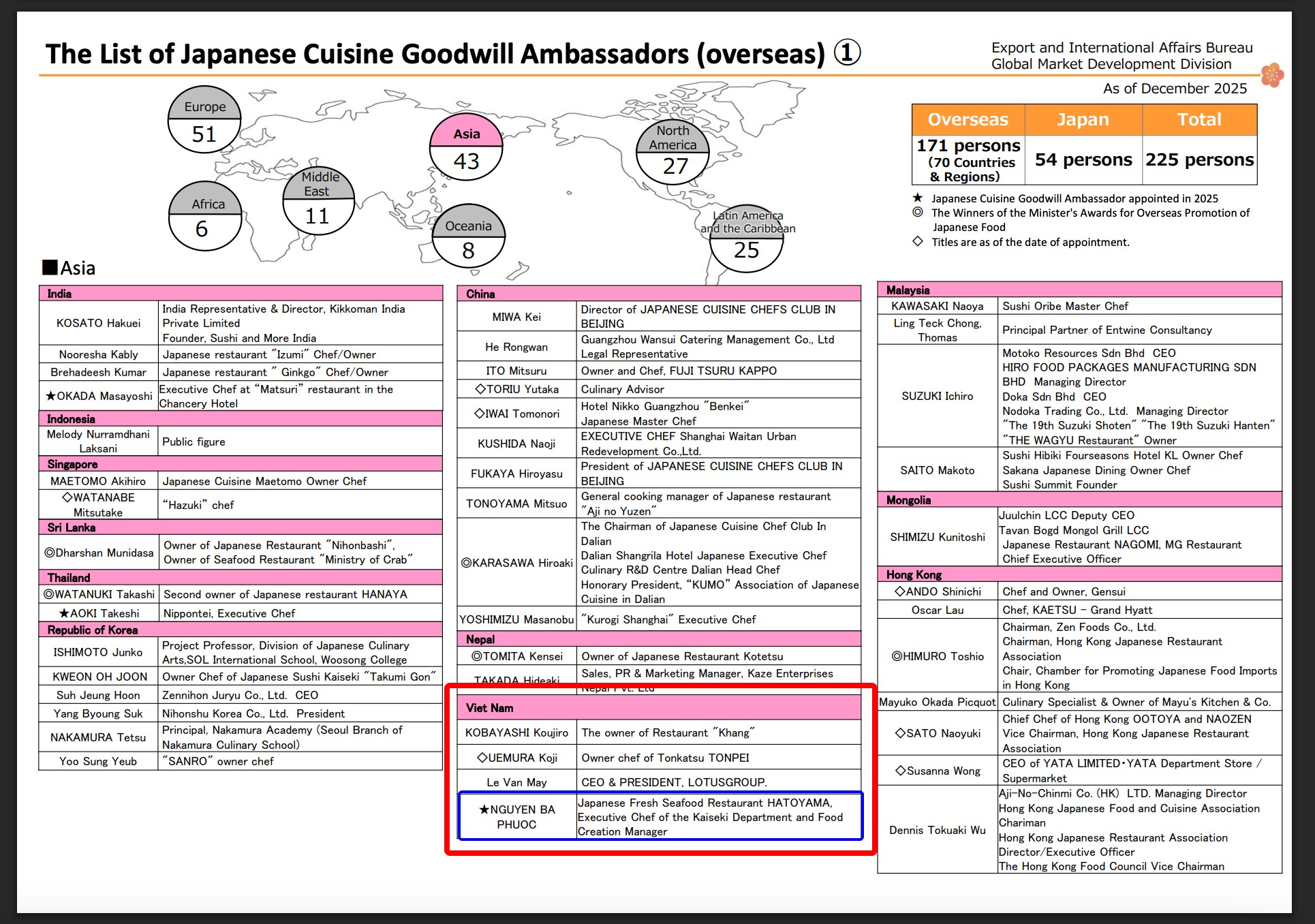 Bếp trưởng Fuku Nguyễn (Chef Fuku)đã chính thức được Chính phủ Nhật Bản bổ nhiệm