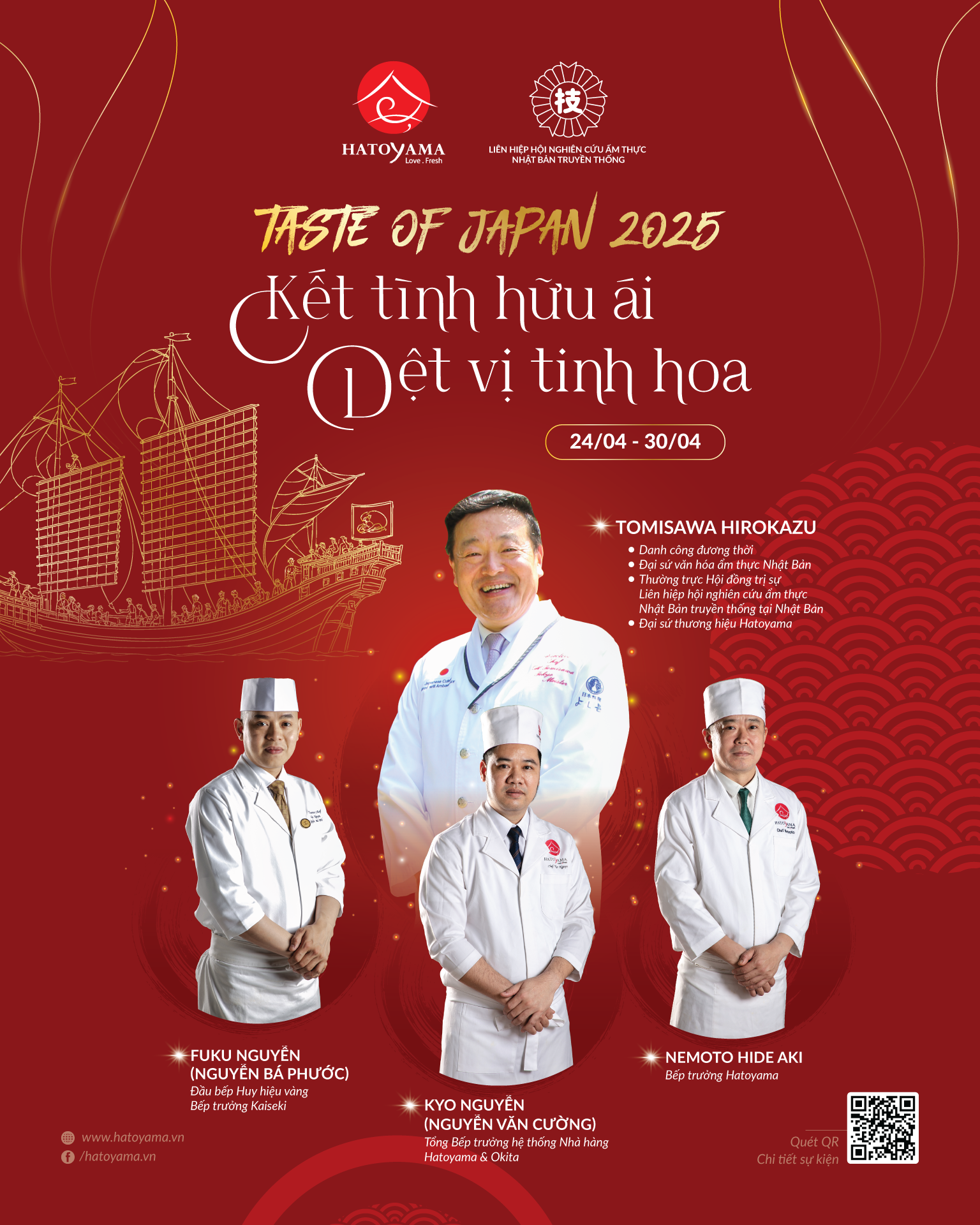 Sau thành công của tuần lễ ẩm thực Taste of Japan 2023 diễn ra vào tháng 7/2023 – sự kiện được tổ chức nhằm kỷ niệm 50 năm thiết lập quan hệ ngoại giao giữa Việt Nam và Nhật Bản, Hệ thống Nhà hàng hải sản Nhật Bản Hatoyama tiếp tục viết tiếp chương mới của hành trình kết nối văn hóa ẩm thực Việt Nhật bằng sự kiện “Taste of Japan 2025”.