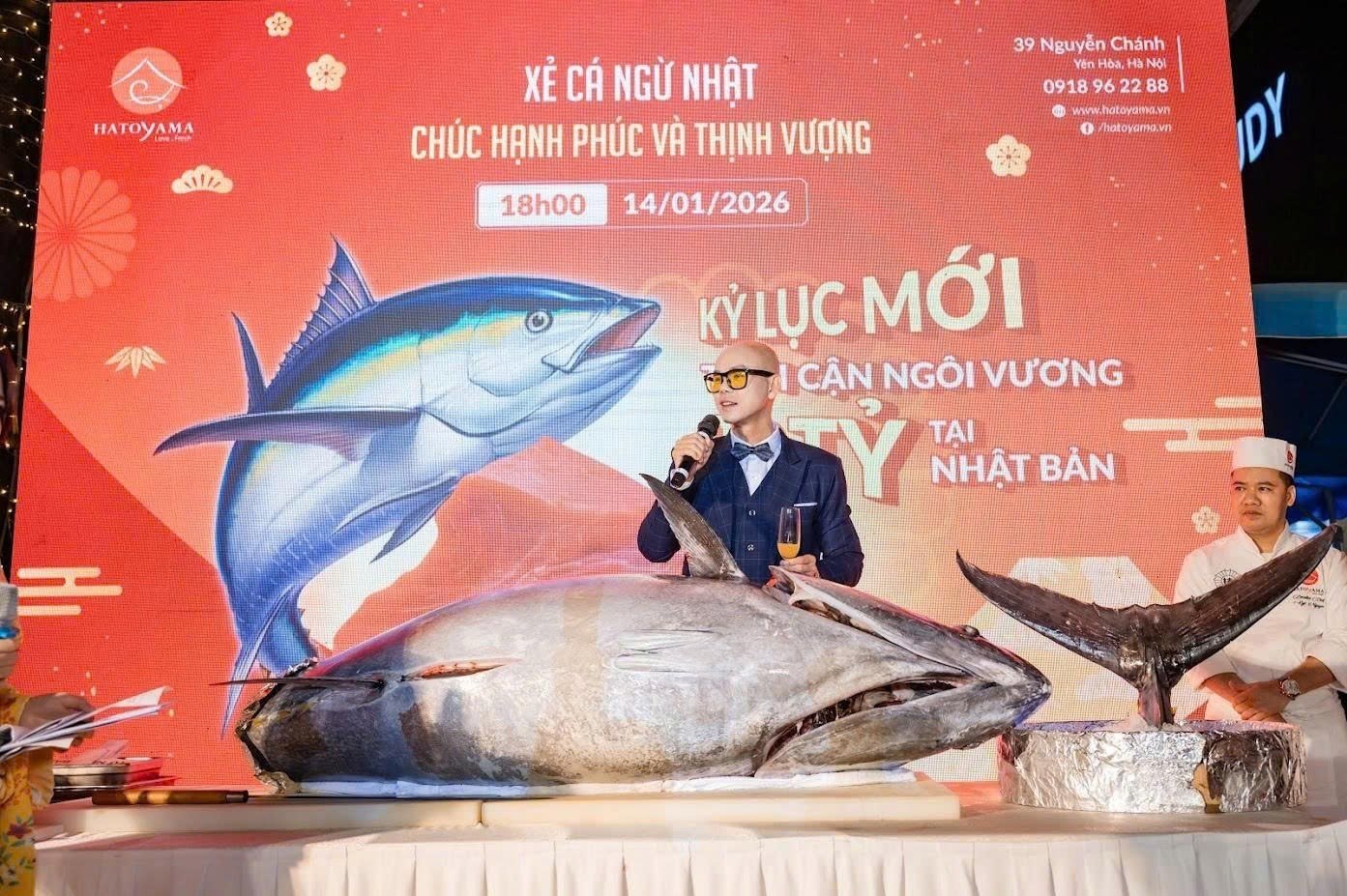 Tối 14/1/2026, ca sĩ Phan Đinh Tùng đã trở thành tâm điểm chú ý khi xuất hiện tại sự kiện đặc biệt của hệ thống nhà hàng Hatoyama. Tại đây, nam ca sĩ không giấu được sự ngỡ ngàng khi tận mắt chứng kiến chú cá ngừ vây xanh Nhật Bản nặng 234kg – xác lập kỷ lục mới về khối lượng cá ngừ Nhật Bản tại một nhà hàng Việt Nam.