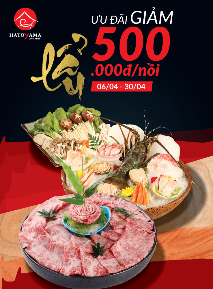 Ưu đãi 500,000đ khi gọi các món lẩu: Lẩu cá Buri, Lẩu bò Nhật, Lẩu hải sản đặc biệt