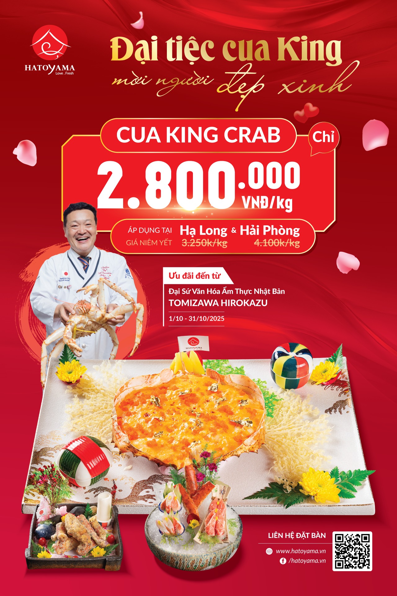 Từng thớ thịt Cua King trắng muốt, ngọt thanh từ vùng biển băng giá, được những nghệ nhân Hatoyama chế biến thành các tuyệt phẩm: