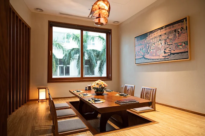 👨‍🍳 Mỗi món ăn được chế biến tỉ mỉ dưới sự cố vấn của Đại sứ Văn hóa Ẩm thực Nhật Bản – Tomisawa Hirokazu, đảm bảo chuẩn mực ẩm thực xứ hoa anh đào. Thớ thịt cua căng mọng hòa cùng không gian Nhật Bản thanh lịch, sẽ tạo nên bữa tiệc khó quên cho phái đẹp.