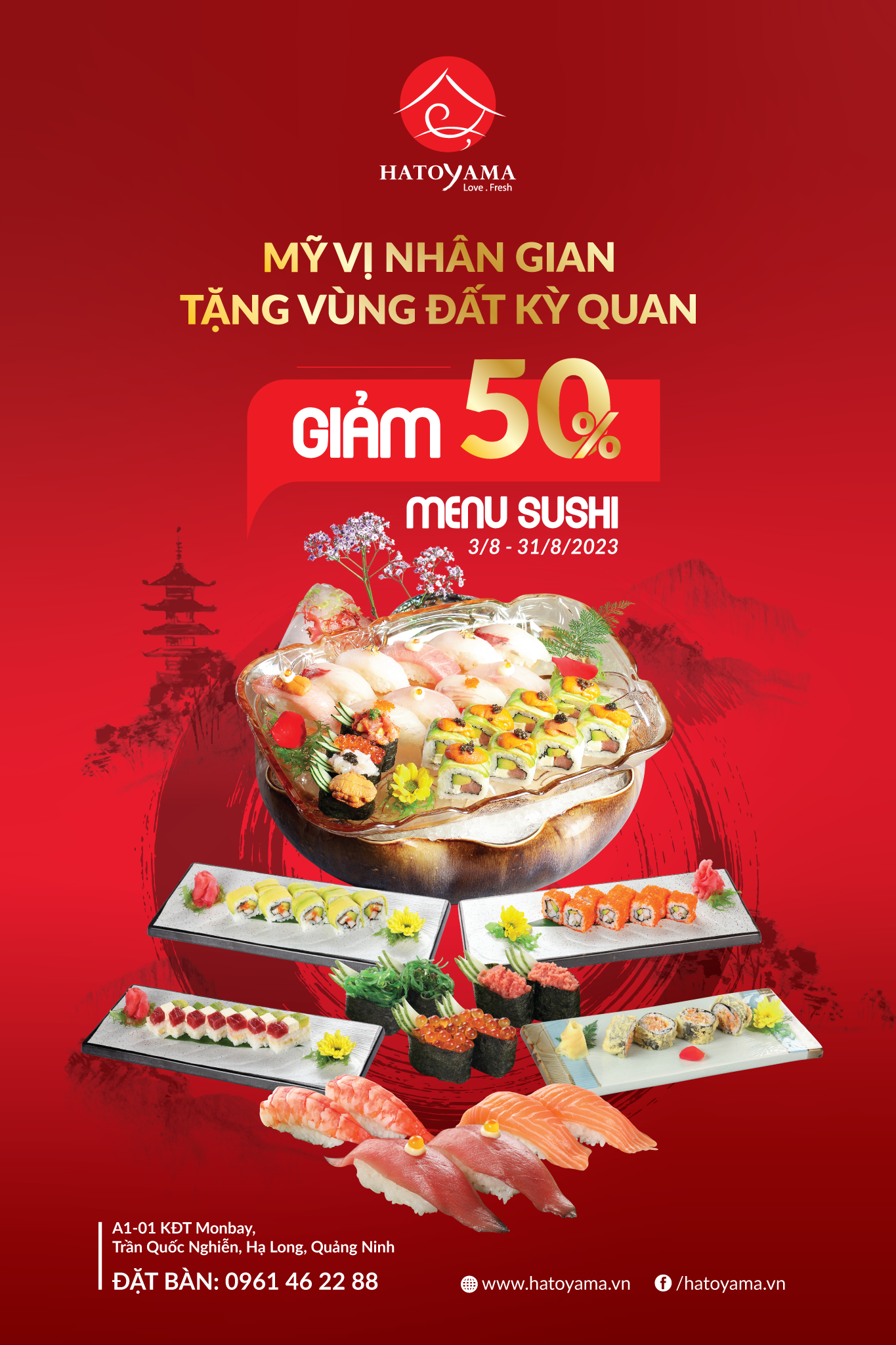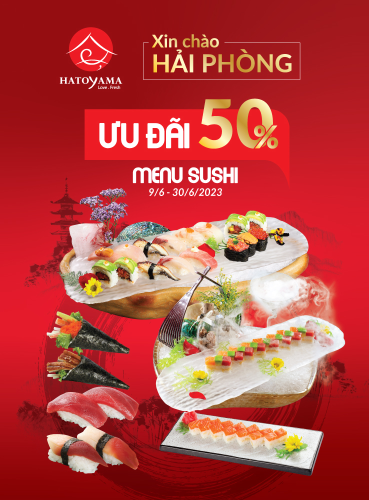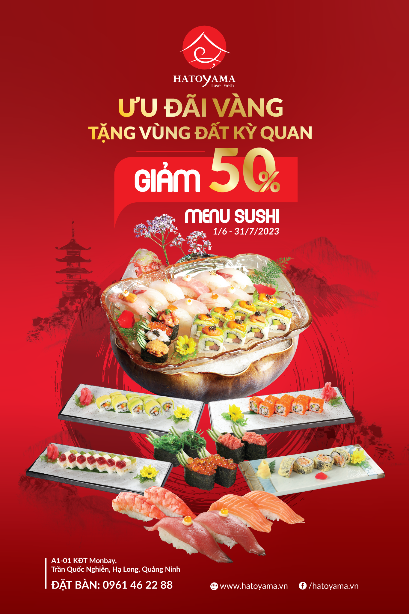 Lần đầu tiên, Hatoyama tặng quà lớn chưa từng có để chiêu đãi thực khách tại Thành phố di sản: ƯU ĐÃI 50% CÁC MÓN SUSHI TOÀN MENU (Áp dụng đến hết 31/7 – duy nhất tại cơ sở Hạ