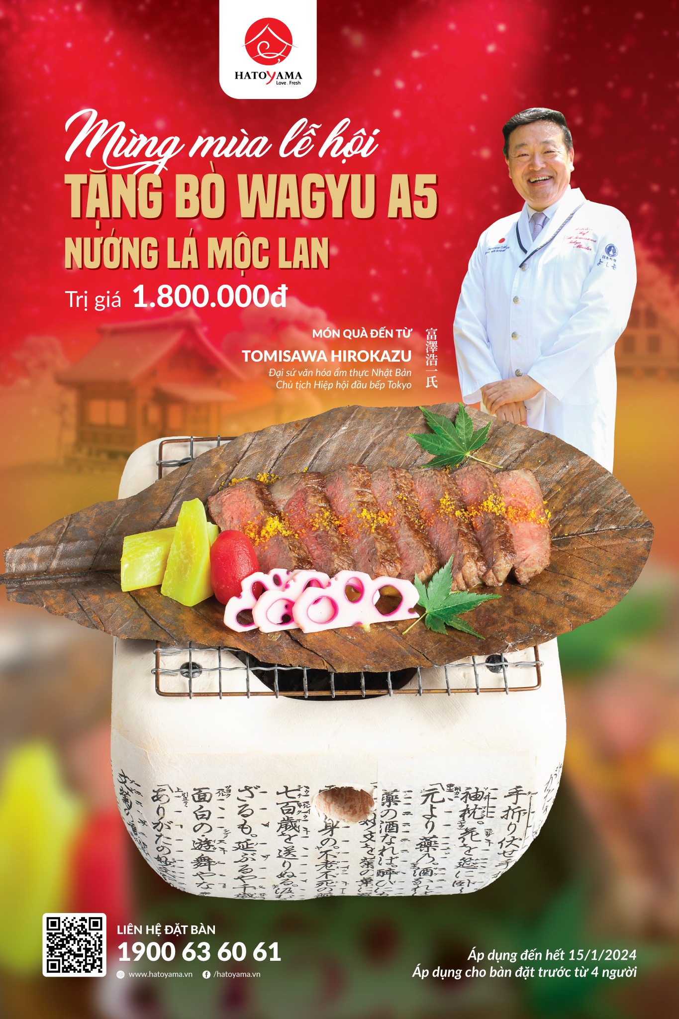 MỪNG MÙA LỄ HỘI: TẶNG BÒ WAGYU A5 NƯỚNG LÁ MỘC LAN (Trị giá 1.800.000đ)