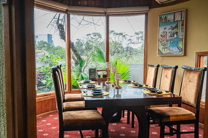 Bước vào nhà hàng, thực khách sẽ choáng ngợp như vừa bước qua cánh cửa thần kỳ để đến một góc của Hoàng cung Tokyo. Kiến trúc cổ kính với sự kết hợp hài hòa giữa ánh sáng và bóng tối, tạo lập sự cân bằng bắt buộc phải có như là yin-yang trong văn hóa Nhật. Hành lang nhà hàng dẫn tới một khuôn viên được bao trọn bởi hồ cá Koi tựa Vườn Đông thu nhỏ tại Hoàng cung.