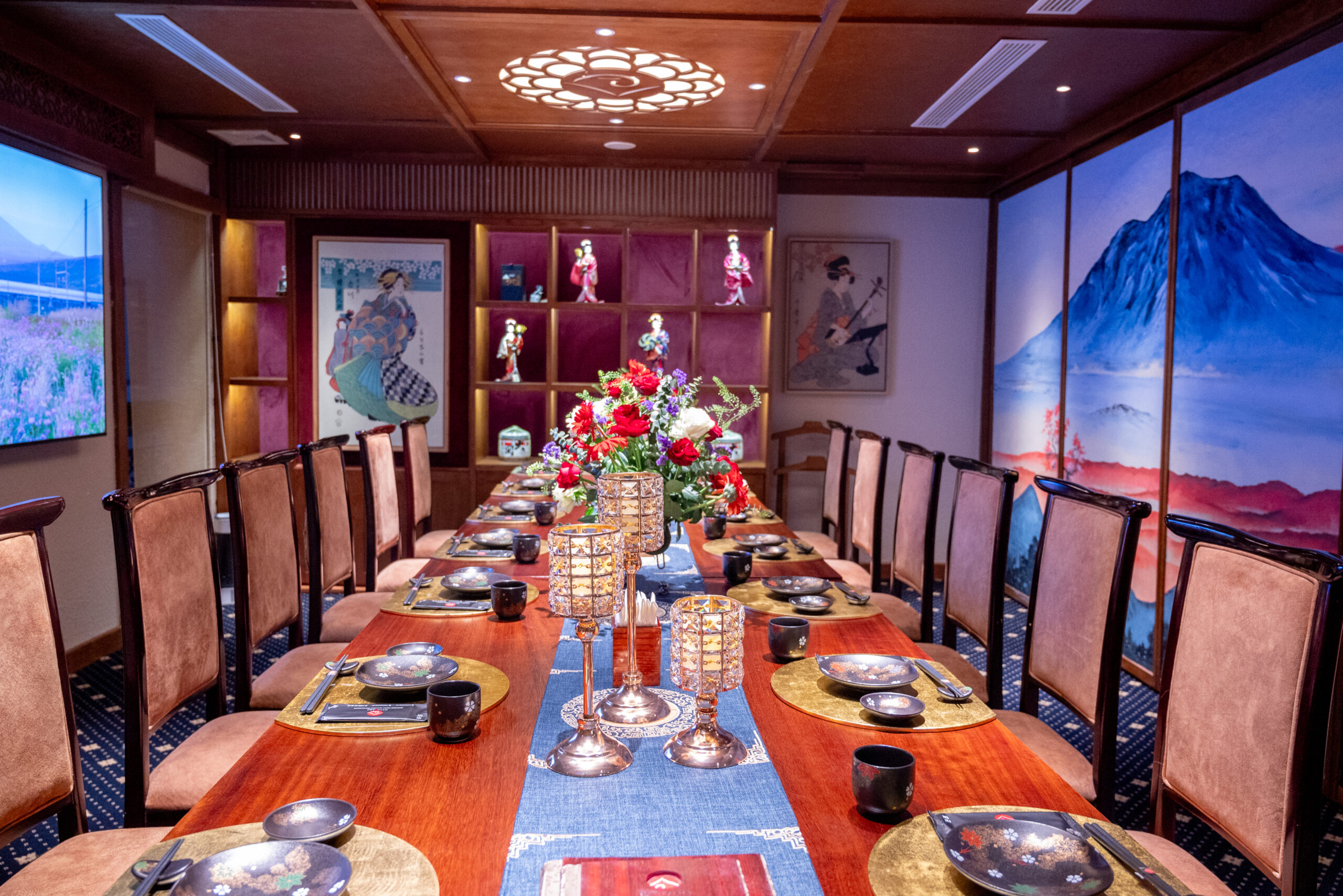 Nhà hàng đã khéo léo tách không gian chung và riêng. Với những thực khách gặp gỡ đối tác, họp mặt bạn bè, gia đình thì có thể lựa chọn các phòng riêng với đầy đủ các thiết bị hỗ trợ như âm thanh, màn hình. Các phòng có sức chứa từ 4 – 12 khách/ phòng cho đến các phòng hội thảo với sức chứa lên tới 80 khách, nhà hàng đều đáp ứng được. Hoặc thực khách có thể ngồi tại quầy để trực tiếp theo dõi đầu bếp biểu diễn chế biến các món ăn.