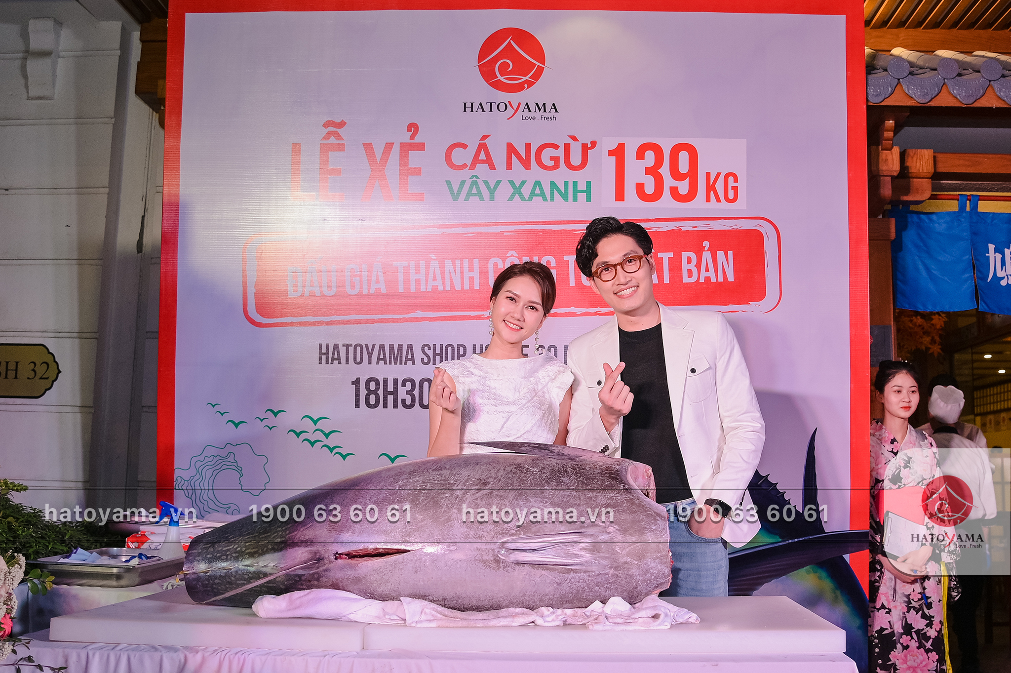 Bên cạnh hàng trăm thực khách có mặt tại sự kiện, Lễ xẻ cá ngừ vây xanh cũng đã thành công thu hút gần 1.000 khán giả theo dõi trên nền tảng livestream. [:en]Tối ngày 16/4 vừa qua, Lễ xẻ cá ngừ vây xanh 139kg tại Nhà hàng Nhật Bản Hatoyama địa chỉ SH30 Nguyễn Chánh đã thành công tốt đẹp. Sự kiện có sự tham dự của cặp đôi diễn viên VTV đình đám Đình Tú – Hương Giang cùng hàng trăm thực khách khác.