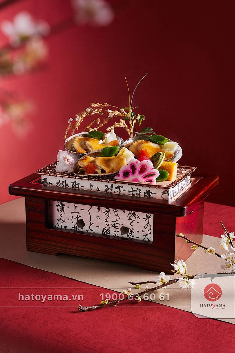 Khi nướng trên than hoa, lớp xốt vàng ruộm từ từ thấm đẫm, bao bọc lấy từng thớ bào ngư xanh thượng hạng. Kỹ thuật xử lý nhiệt bậc thầy đã “thuần hóa” hoàn toàn độ dai vốn có, khiến bào ngư trở nên mềm tan như bơ , hòa quyện tuyệt đối với vị ngọt thanh khiết của hành Paro (Hành baro Nhật) nướng kèm. Một sự kết hợp hoàn hảo giữa biển cả và vườn tược, giữa sự sang trọng và nét mộc mạc. Món ăn tựa như một “thỏi vàng” may mắn, gửi gắm lời cầu chúc cho năm mới thịnh vượng khởi sinh từ chính những tinh hoa bí ẩn của đất trời.