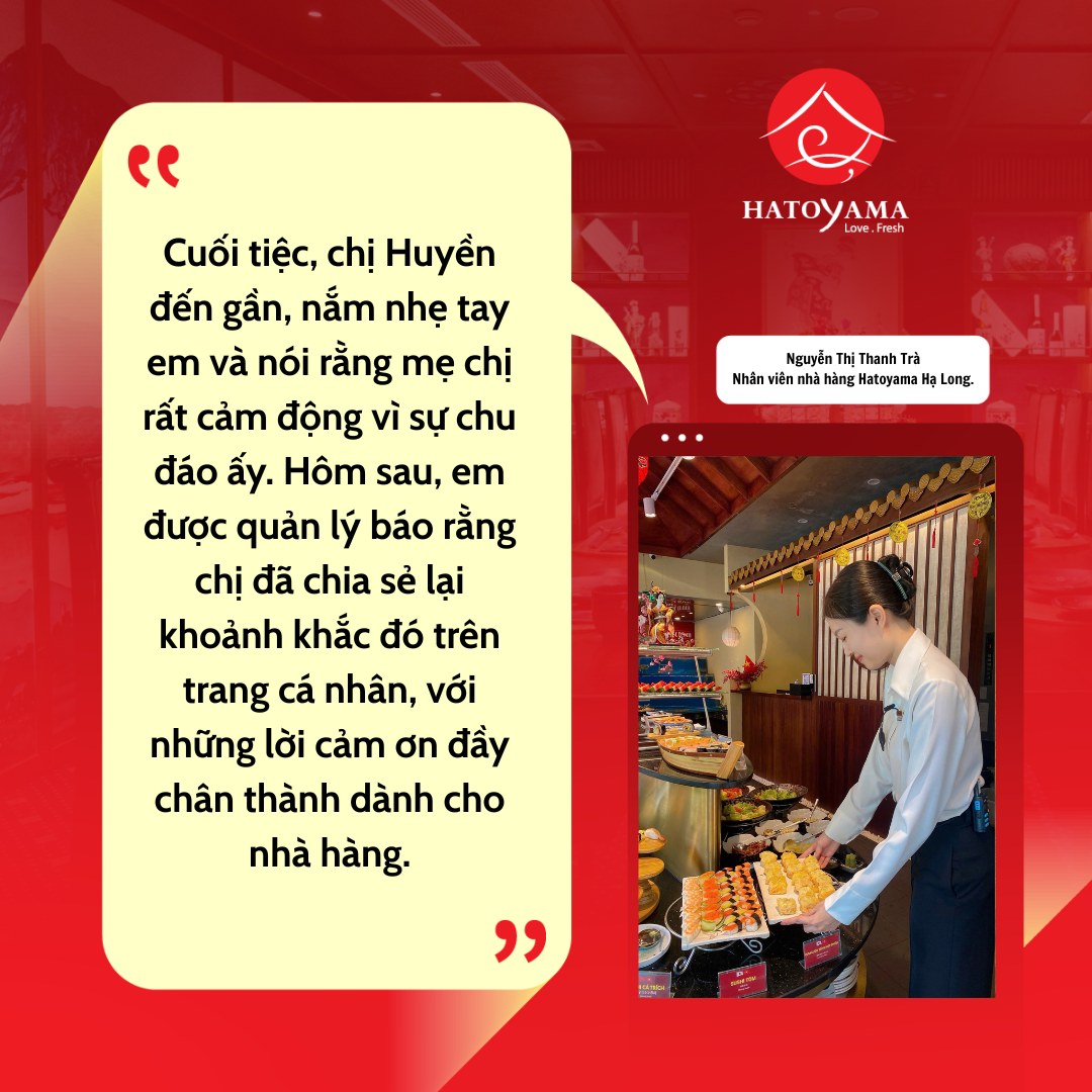 Câu chuyện từ bạn Nguyễn Thị Thanh Trà – Nhân viên nhà hàng Hatoyama Hạ Long.