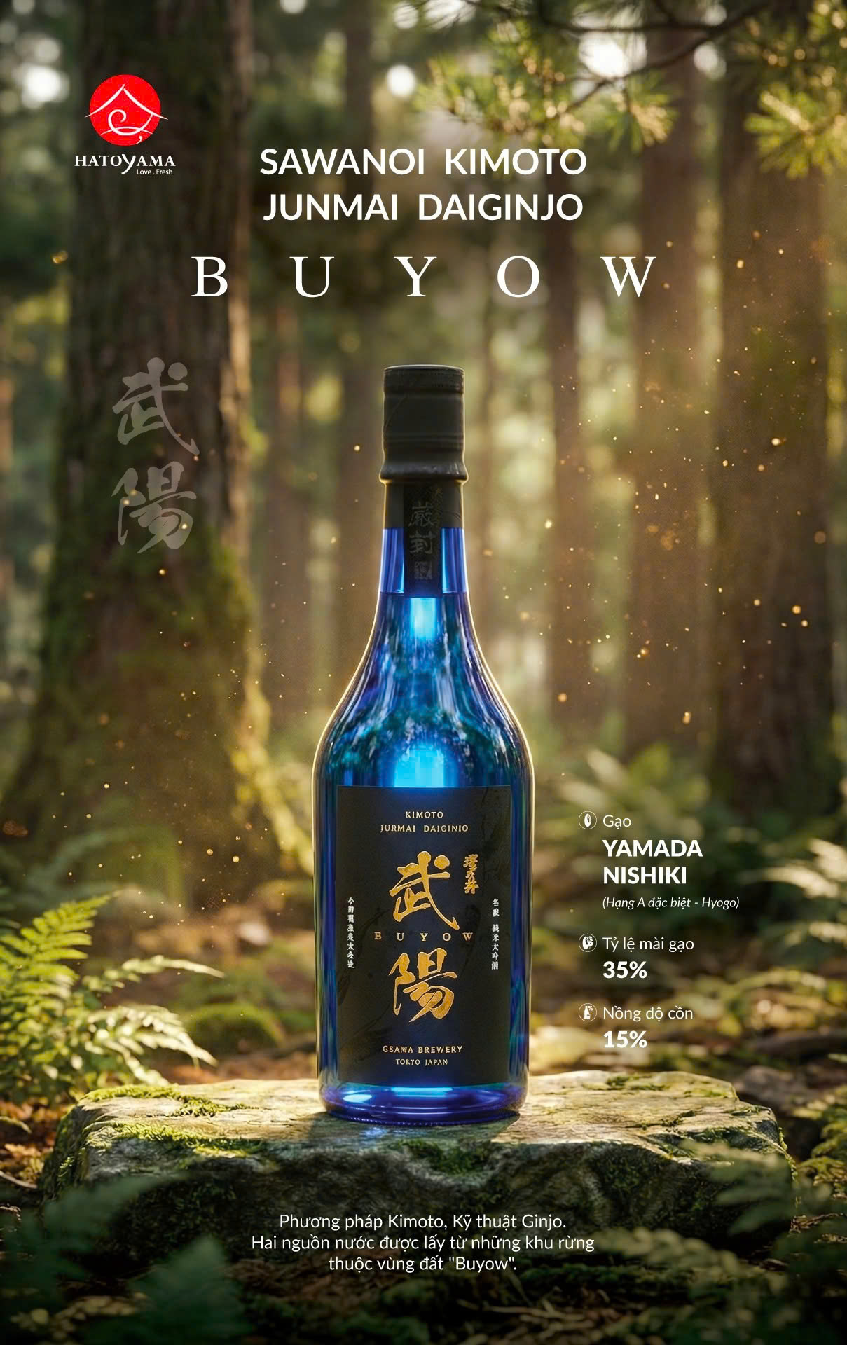 Khoác lên mình sắc xanh huyền bí, “Buyow” là bản giao hưởng giữa phương pháp ủ Kimoto thủ công hàng trăm năm và đẳng cấp Junmai Daiginjo thanh tao. Được kiến tạo từ nguồn nước tinh khiết trong rừng sâu Tokyo và gạo Yamada Nishiki (Hạng A), rượu sở hữu cấu trúc “ngoài nhu trong cương”: mở đầu thanh thoát nhưng hậu vị Umami lại đậm đà, sâu lắng đầy nội lực.