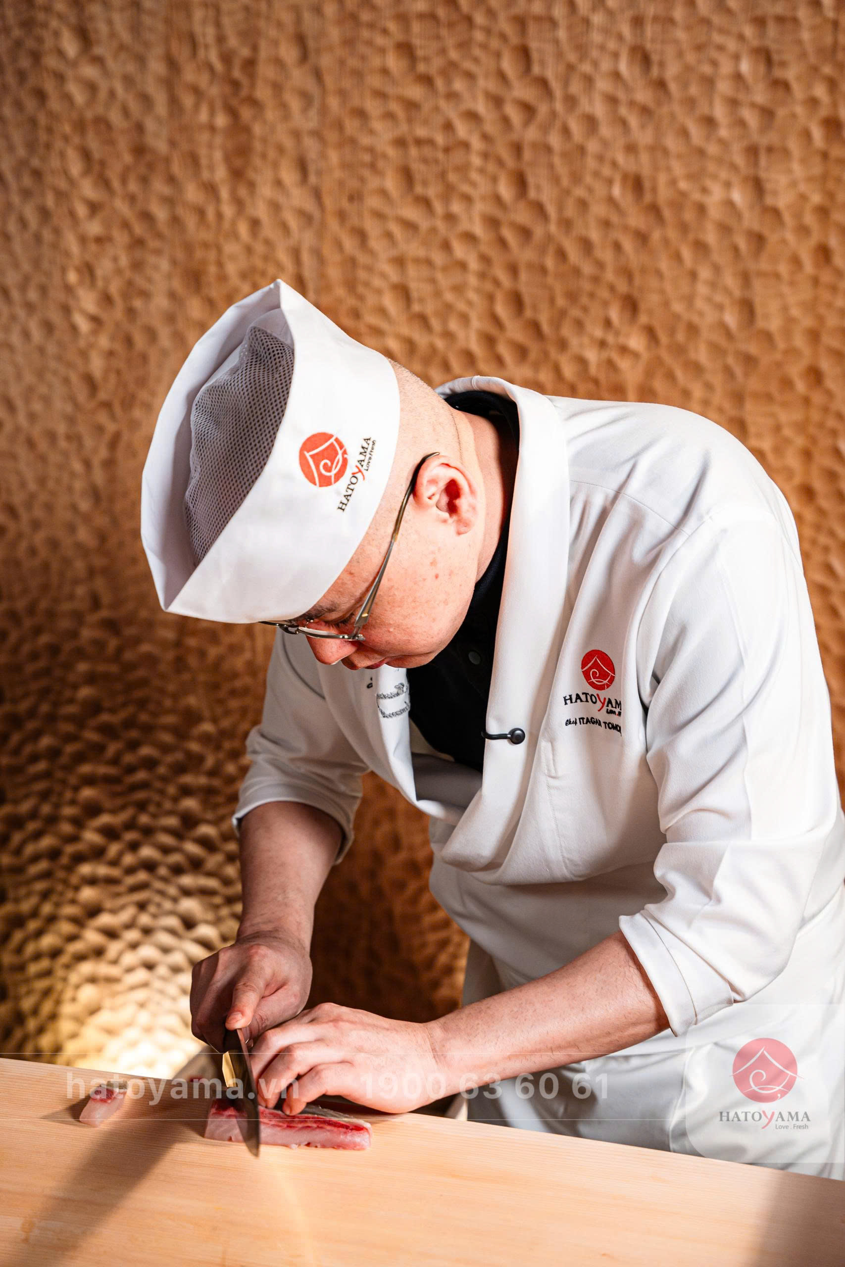 - Đặc quyền đại dương: Nguồn hải sản được vận chuyển hỏa tốc từ biển Nhật Bản chỉ trong chưa đầy 24h. Dưới lưỡi dao sắc bén của bếp trưởng, những khối cá ngừ vây xanh khổng lồ phơi bày những đường vân mỡ đỏ au, béo ngậy tan ngay đầu lưỡi.