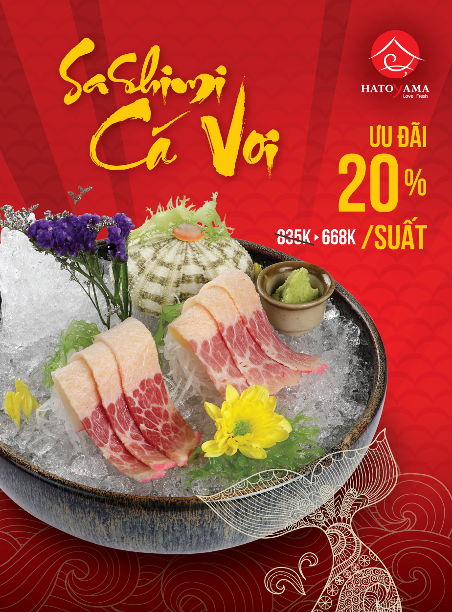 Nhân dịp đầu năm mới, Nhà hàng hải sản Nhật Hatoyama dành tặng ưu đãi 20% đối với món shashimi cá voi như là món quà ý nghĩa tri ân khách hàng.